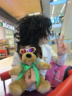 Für gute Zeugnisse bekommen die Kinder immer was und meine Kleine suchte sich Sachen für Fastnacht aus... Irokesenperücke, Netzstrümpfe, falsche Wimpern... und mit der Perücke ging sie durch Hamburg.