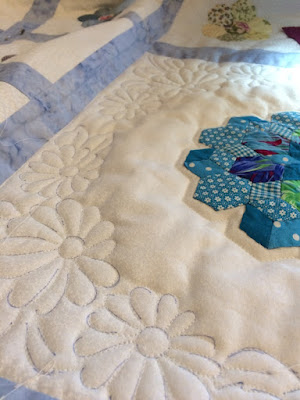 zauberhaft finde ich die gequilteten Blumen. Ich finde mal wieder, der Quilt hat gewonnen durch das Quilten.